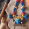 Add a touch of spiritual elegance to your wardrobe. This hand-painted terracotta necklace features the iconic peacock feather and flute motifs, celebrating the timeless beauty of Krishna.